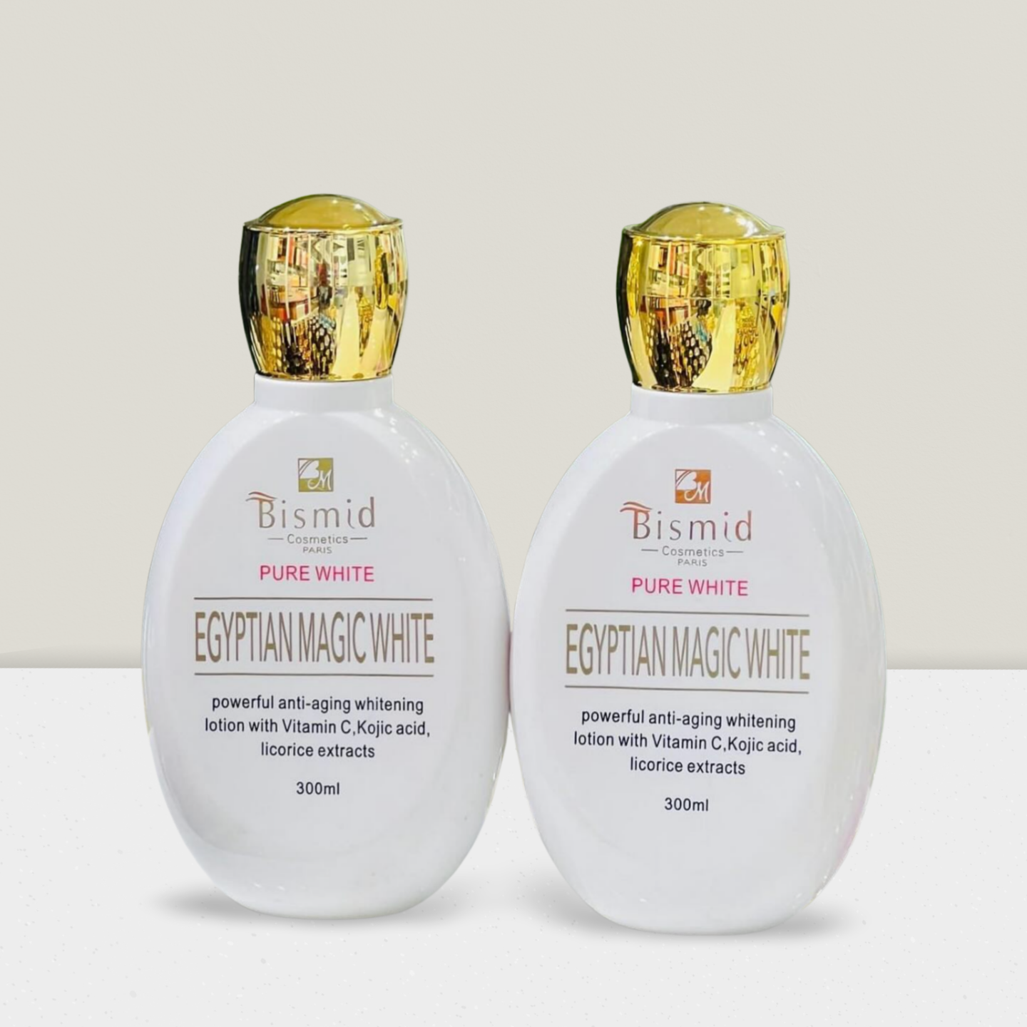 Découvrez la puissance d’une peau éclatante et unifiée grâce à la Lotion Égyptienne Magique de Bismid, une formule avancée enrichie en Acide Kojique, Vitamine C, Alpha Arbutine, Busserole et Réglisse. Ces actifs hautement efficaces agissent en synergie pour estomper les taches brunes, unifier le teint et raviver l’éclat naturel de votre peau.