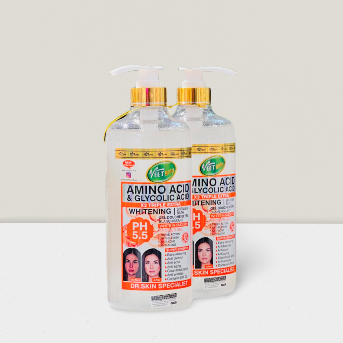 🌟 Adoptez le luxe et la performance du Gel Douche Veet Gold Clear Darkspot et révélez votre plus belle peau.